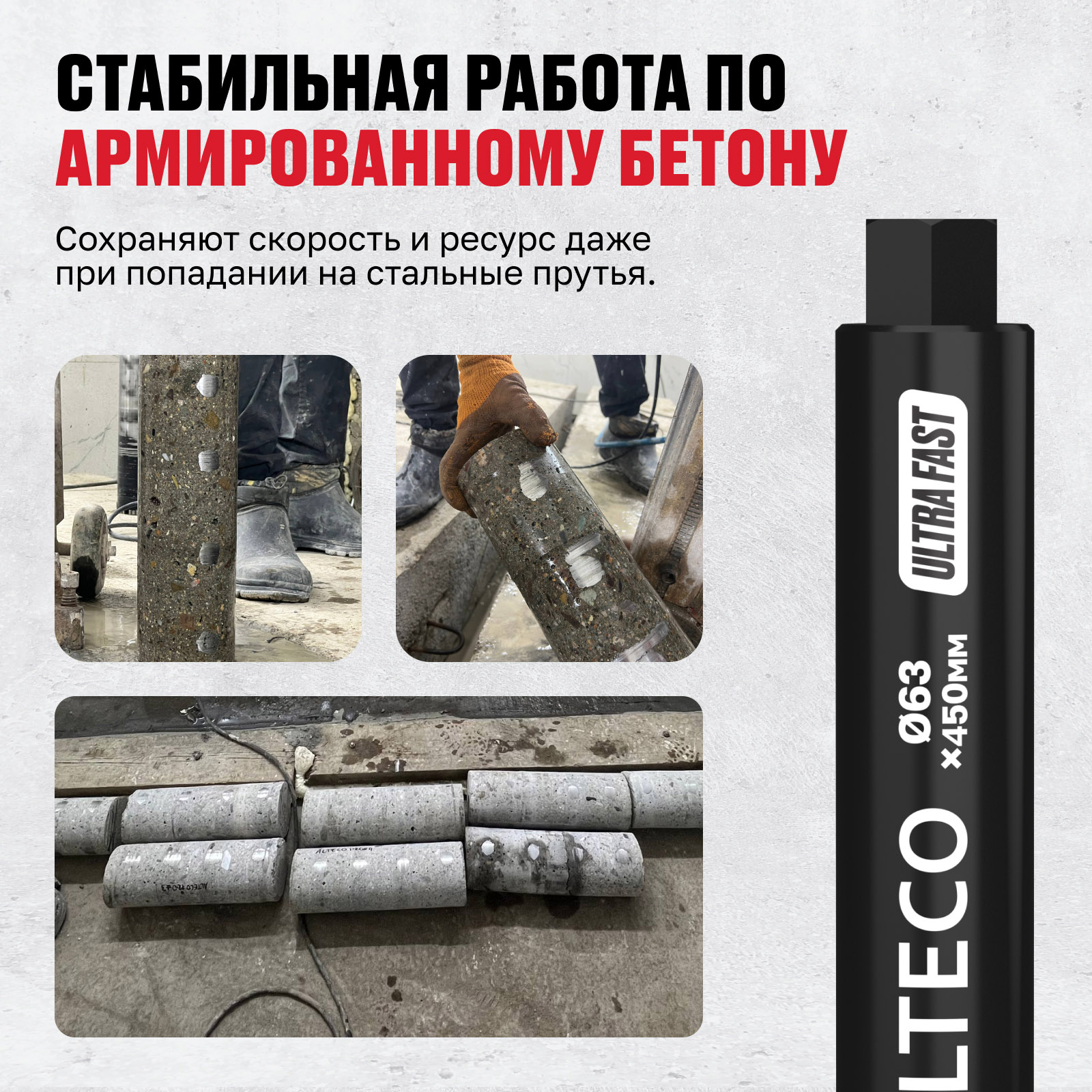 - Стабильная работа по армированному бетону — сохраняют скорость и ресурс даже при попадании на стальные прутья.