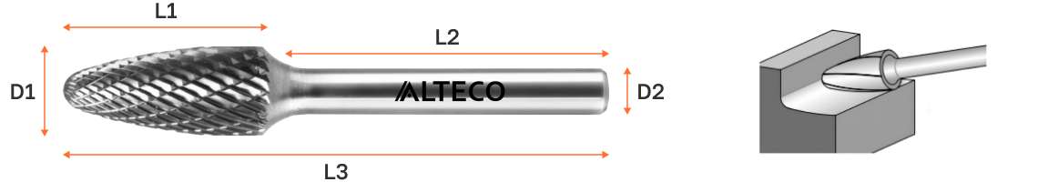 Борфрезы имеют двойную насечку, обеспечивающую эффективное удаление материала и превосходное качество обработки поверхности.
